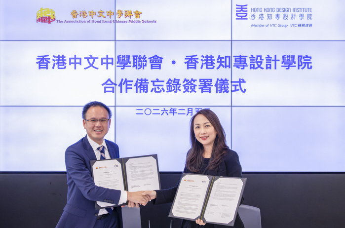 2026年2月5日,职业训练局(VTC)辖下香港知专设计学院(HKDI)与香港中文中学联会签订合作备忘录,旨在透过专业对话及潜在协作项目,共同探索推动职业专才教育(VPET)发展的新机遇,特别是在设计学科领域。