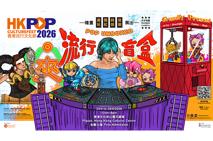 康乐及文化事务署(LCSD)与香港知专设计学院(HKDI)合作,策划《流行盲盒》户外装置展览,由新生代设计师操刀,由音乐、时装、空间设计、漫画到IP文创,全方位解构香港流行文化慨多元面向!